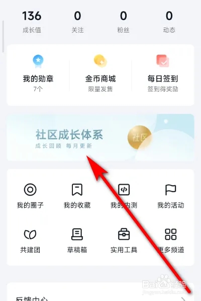 1、在软件中点击【社区成长体系】。
