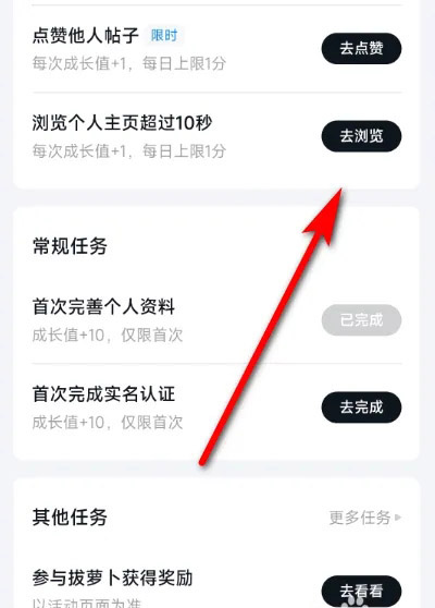 4、这里可以看到有着众多的任务可以获得成长值
